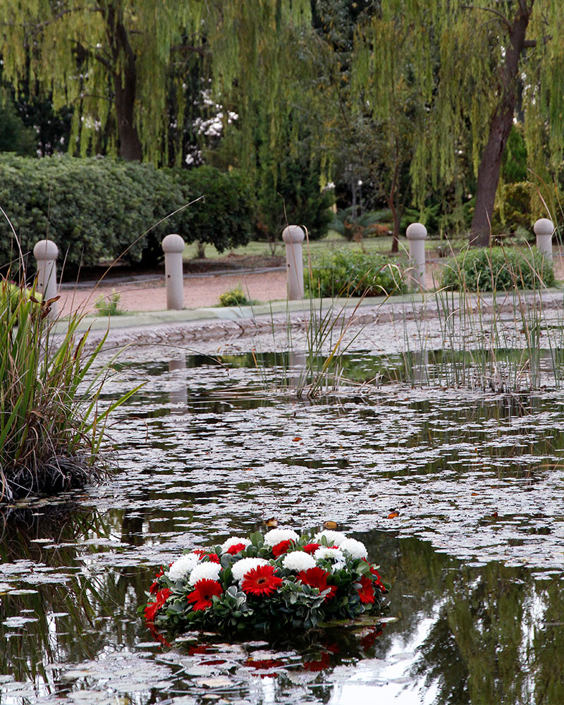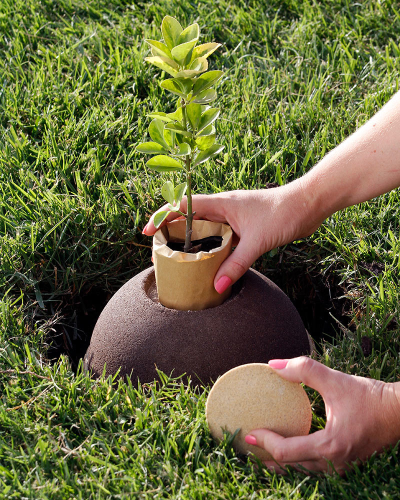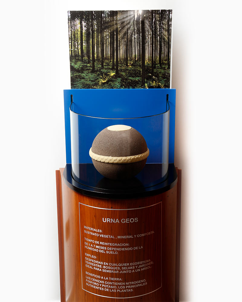 Las cenizas de nuestro ser querido son depositadas en la urna tierra (Geos) junto a un árbol pequeño, así en un futuro retornaran a la naturaleza. Al pie del nuevo árbol una placa nos recordará a nuestro familiar.